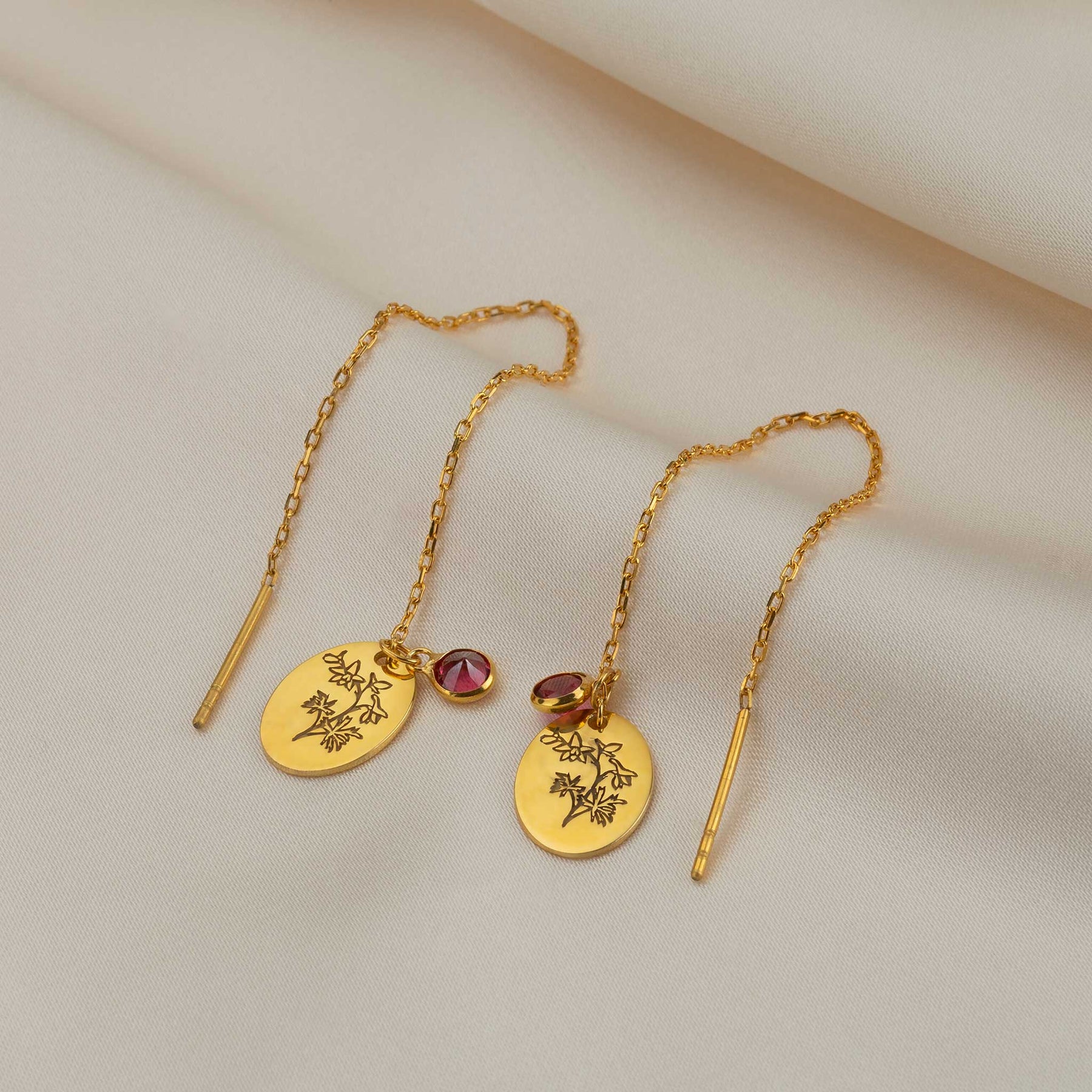 Da un toque personal a tu look con nuestros elegantes pendientes de flor de nacimiento, hechos de plata 925 de alta calidad. Cada par está adornado con un delicado grabado de tu flor de nacimiento, un símbolo de tu mes de nacimiento y tu singularidad.