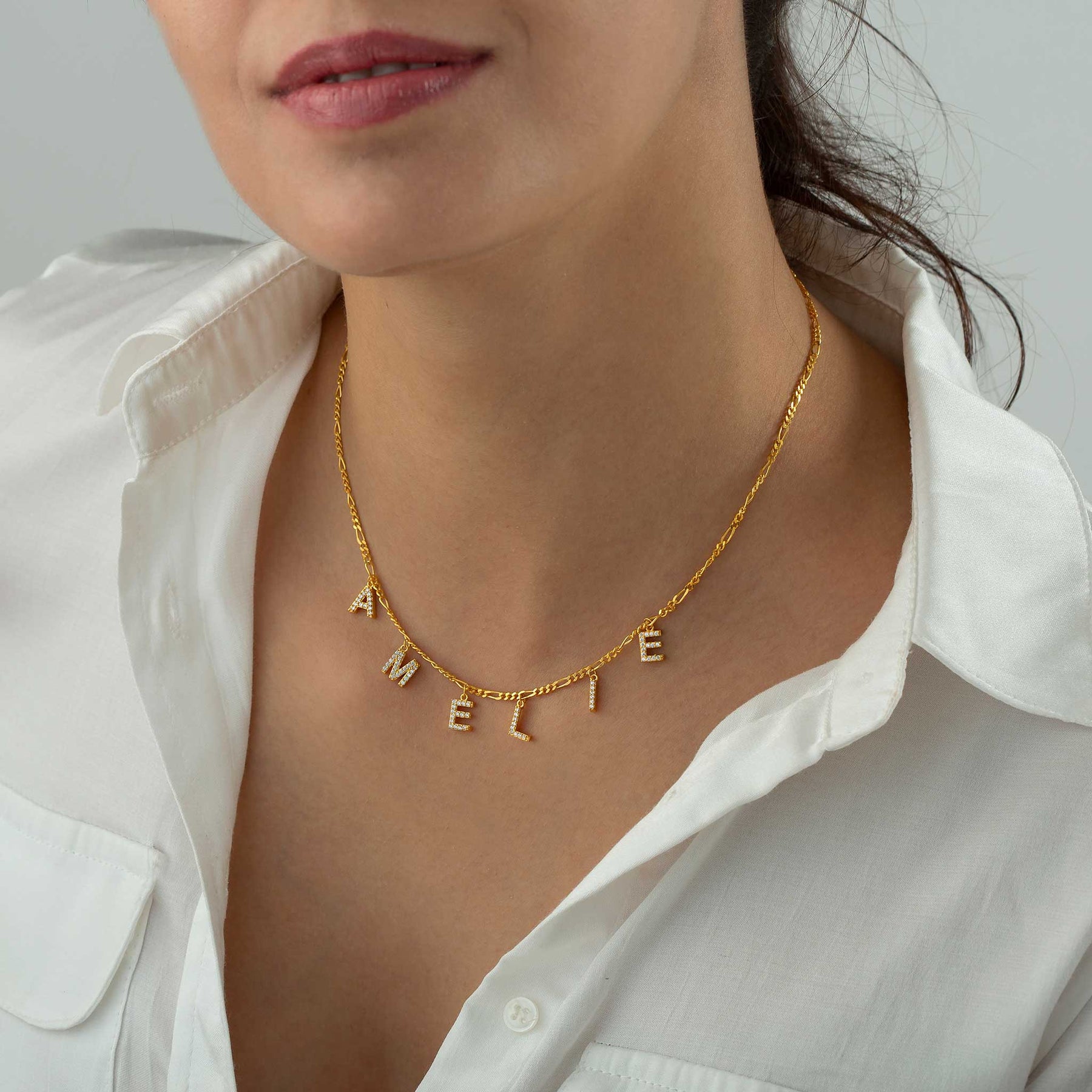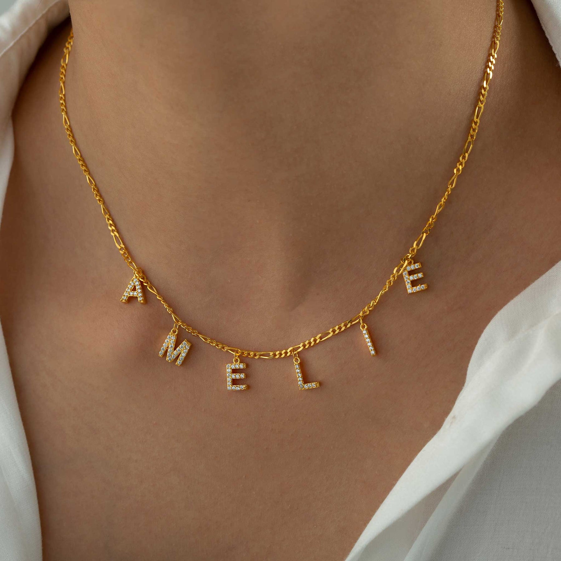 Figaro Cadena de Nombres con Letras de Circonio y Juego de Pulsera para Pareja