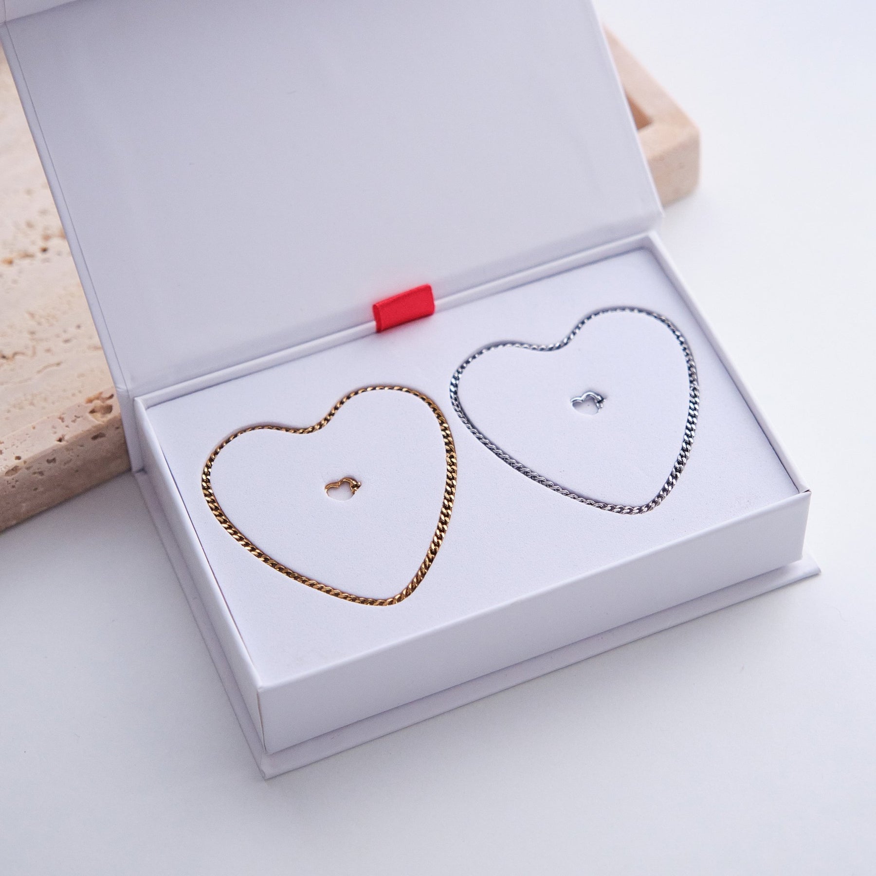Una vez cerradas, vuestras pulseras quedan unidas de forma inseparable. La aplicación es sencilla y representa un símbolo permanente de vuestra conexión. El set se complementa con un certificado de unión que simboliza vuestra relación.